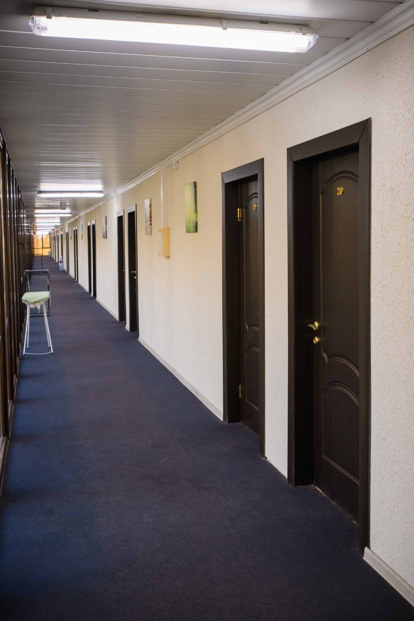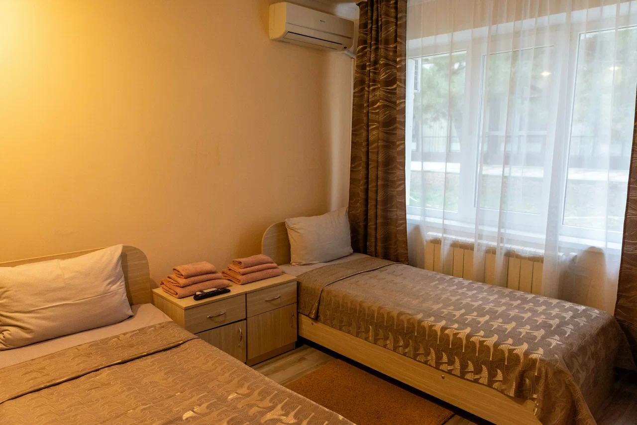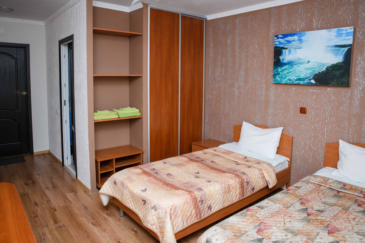 Проживание на спортивной базе «Олимпия» — в 2-х местных номерах и 3-х местных домиках на территории комплекса.