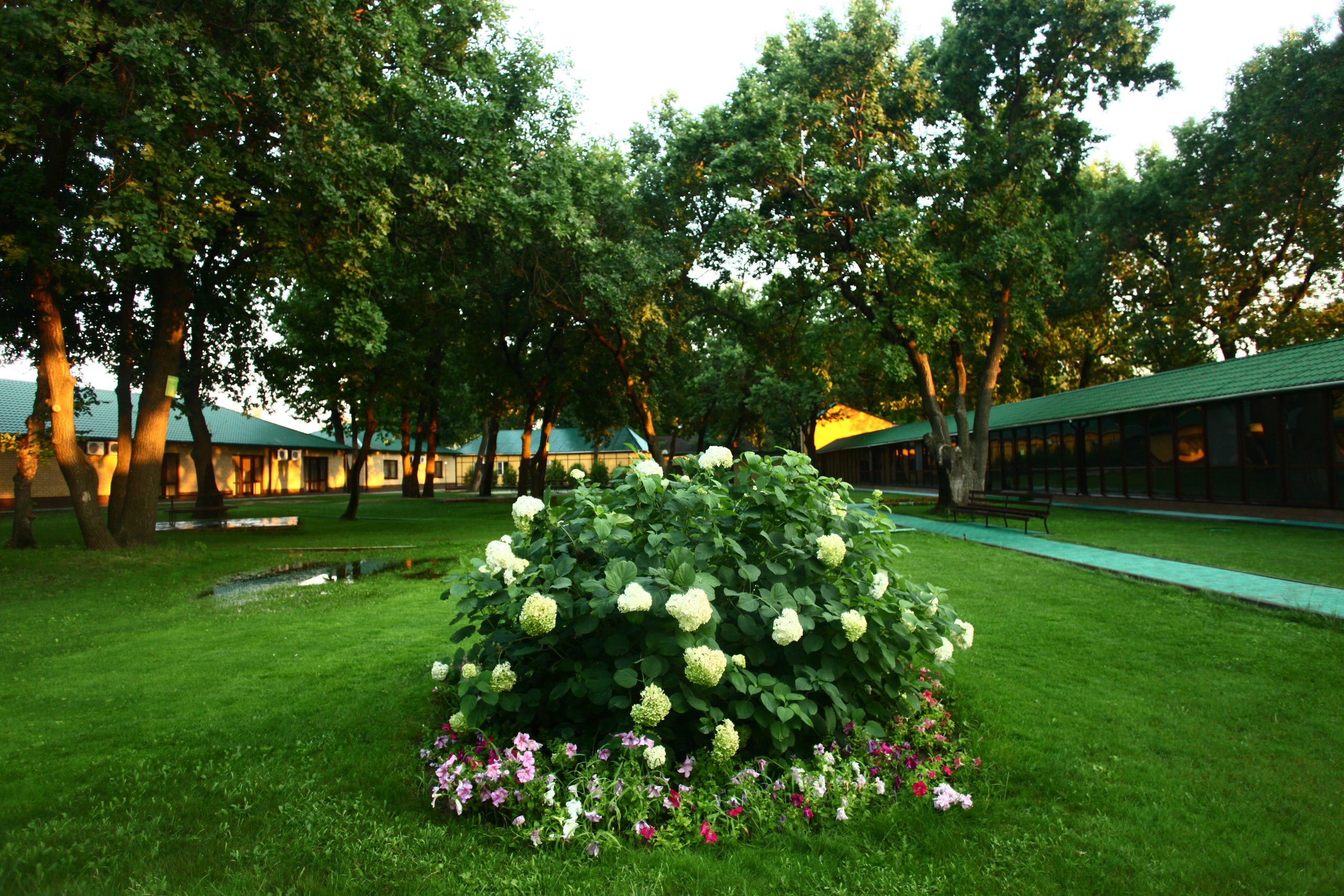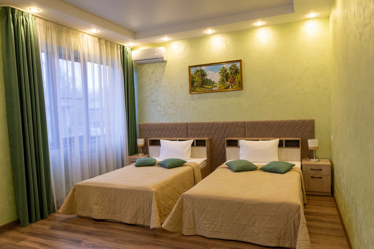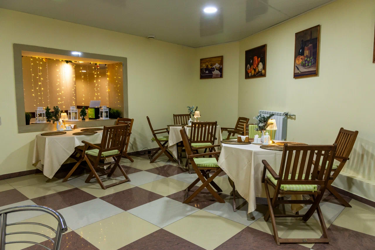 Проживание на спортивной базе «Олимпия» — в 2-х местных номерах и 3-х местных домиках на территории комплекса.