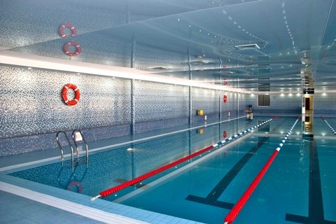 Тренировки проходят в 50-метровом бассейне с тумбами, соответствующем стандартам соревнований.